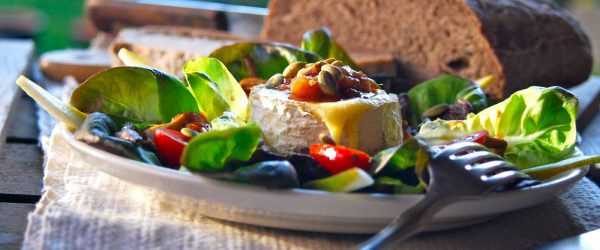 Onze salades smaken extra lekker met een glas witte wijn en avondzon op ons terras.
